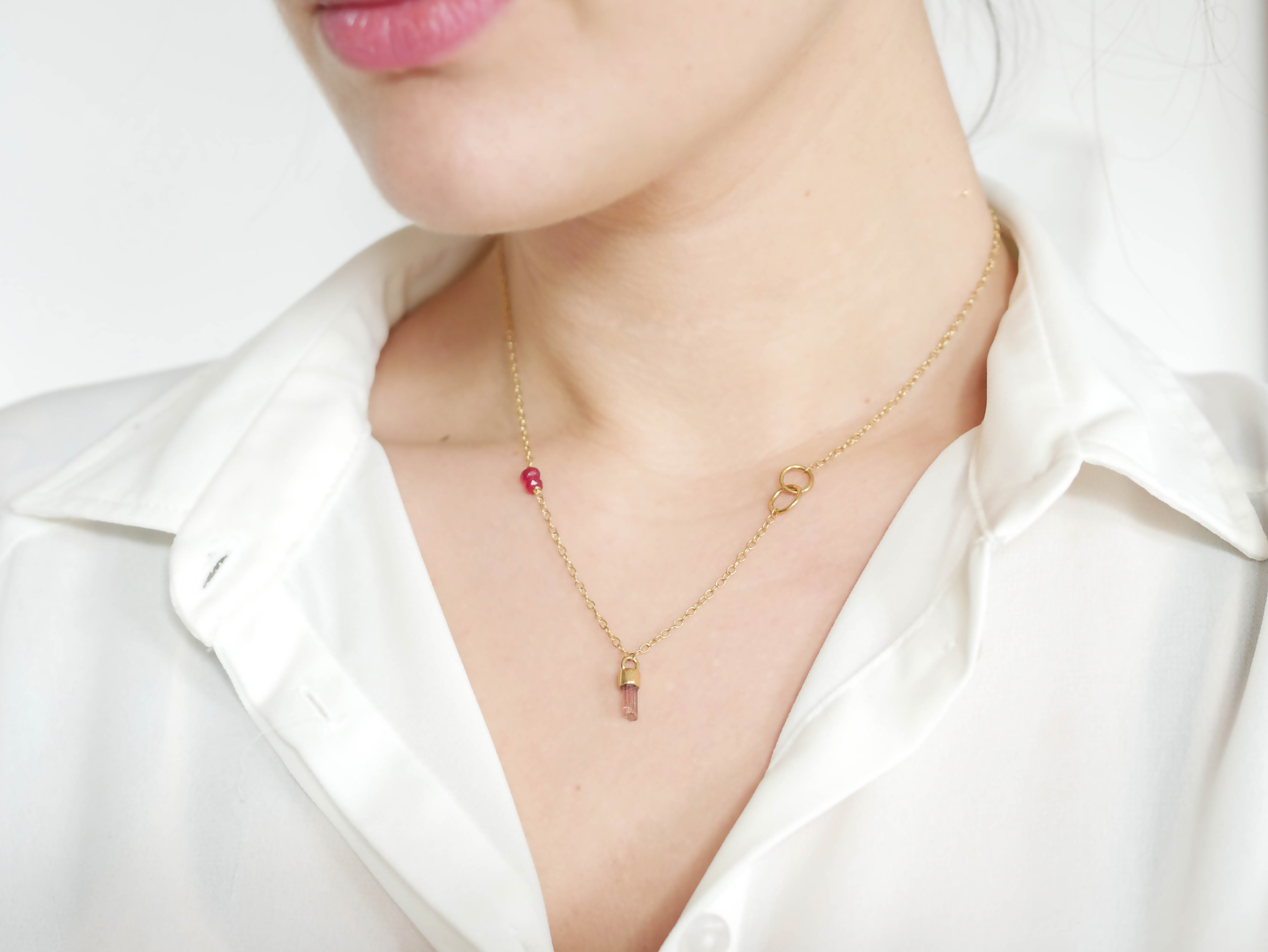 Collier Oracle « L’amoureux » – Vermeil (argent 925 plaqué or 18K) – tourmalines et rubis.